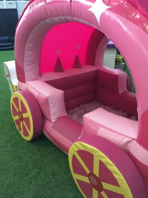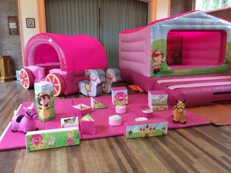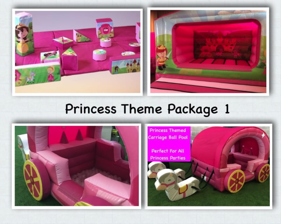 Princess Theme Soft Play Package 1 THIS PACKAGE IS FOR INDOOR HALLS AND VENUES ONLY IMPORTANT: Please check the floor requirements before booking this package. Are you having a princess theme event? then why not hire or amazing princess soft play package. This package Includes a princess theme soft play set, princess themed bouncy castle, stunning princess theme carriage ball pond with soft play horses, this is an amazing package for any little princess. Princess Themed Bouncy Castle 14.5ft x 10.5ft x 7.5ft Princess Theme Soft Play Set Princess Theme Carriage Ball Pond Hire Mats