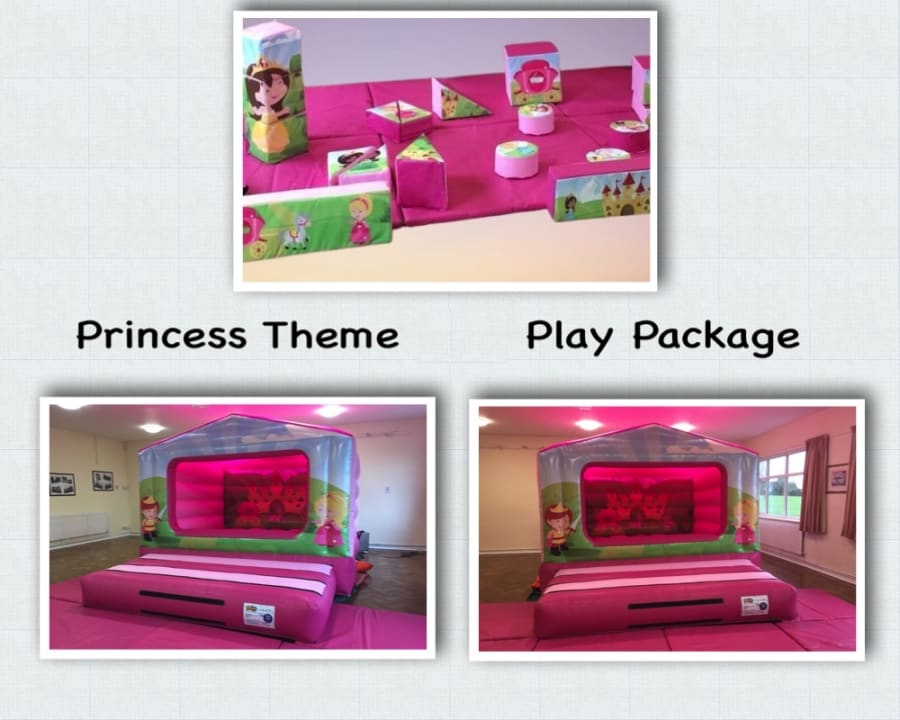 IMPORTANT: Please check the floor requirements before booking this package. Soft play items can be used outdoors undercover gazebo, marquee on covered floors or indoor venues or home indoor rooms. Hire our amazing princess theme bouncy castle and soft play package. This basic package Includes 18 piece princess theme soft play shapes and princess themed bouncy castle, its an amazing package for any little princess. Princess Themed Bouncy Castle 14.5ft x 10.5ft x 7.5ft Princess Theme Soft Play Set Mats