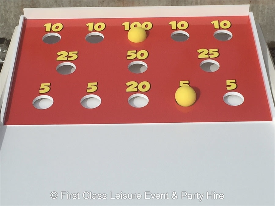 Ball coconut game is similar to a coconut shy game but supplied with rubber balls on the stand tops (instead of real coconuts), this is a a more safer version and great for children. The standard coconut shy game is supplied with metal frames and can only be provided for outdoor hire on grass because the stands need to be knocked into the ground. You can still buy coconuts and give the coconuts to the winners (or other prizes) so still keeping to the traditional coconut shy game, it’s your choice.