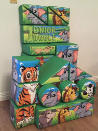 If you are having a jungle theme event then why not hire our amazing Jungle theme soft play set. These bright colourful soft play foam shapes are just ideal for children to touch, sit or climb on. The jungle set comes with a range of 17 shapes, triangles, slopes, squares, steps, puzzle cubes and stepping stones.