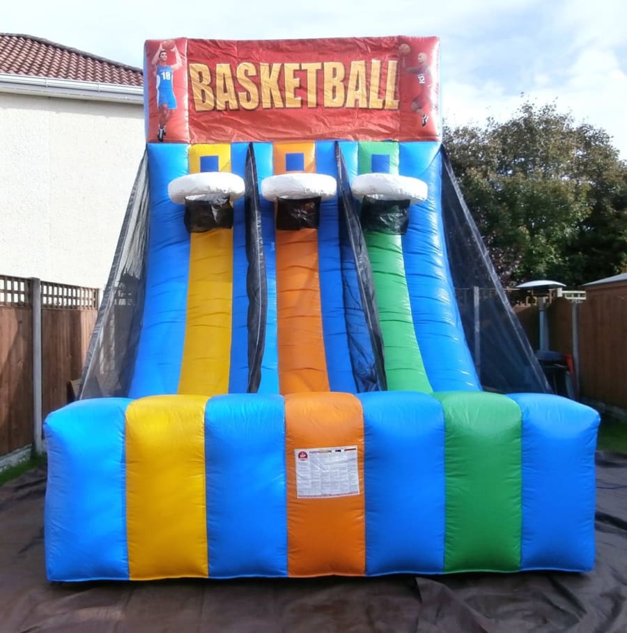 Basketball Shootout is very impressive colourful inflatable with three basketball hoops which can be used at the same time. Just reach over the inflatable front to retrieve the basket balls.