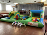Our play zone farm yard comes complete with a built in soft play step n slide, enclosed soft play ball pond and a floating air ball blower so lots of activities to keep children entertained. Hire our amazing Inflatable play zones for your next toddler event, these are just great fun.