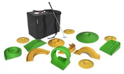 Portable Mini Golf set is supplied in a bag and includes 13 moulded crazy golf obstacles (making 9 holes), 4 rubber golf putters and low bounce coloured golf balls. This golf set is supplied in a bag for your own set-up and only takes a few minutes to create your own portable golf course. Mini Golf is portable and provides fantastic fun and entertainment for all abilities and all ages (4+) with adult supervision, it can be played almost anywhere, in teams or individually. Crazy golf is the play anywhere golf game with unlimited fun and can be played indoors, even at home. For extra safety we provide different sized rubber ended golf putters (Insurance friendly putters). Hire extra golf putters set of 4 or multiples of 4’s We sell Mini Golf Sets