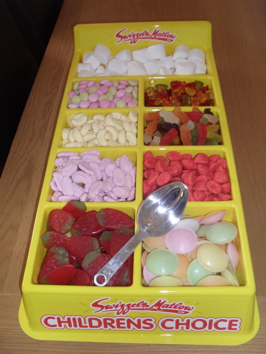 To make a booking, click on the product item, enter your date and post code area. This table top sweet tray caters for up to 50 guests. The price listed to HIRE ONE yellow pick n mix tray, supplied and filled with sweets, bags and scoop. Each pick & mix tray hire comes complete with a selection of 9 sweet choices, paper sweet bags and scoops. Everyone loves pick & mix!! Everyone loves sweets, kids and adults. Why not hire a table top pick & mix sweet tray filled with a selection of fresh yummy sweets for your next event. One filled pick n mix tray is recommend for up to 50 people. Great product choice for children’s parties, tuck shop, office parties, celebrations, weddings, fetes, fun days, fund raising events, schools, family home table treat and perfect for events with small spaces. Hire additional extra's to this product item: 4ft long table and table cloth. To get a price quote for your event use our contact us enquiry form Once we have all your event details we will get back to you quickly or within 24-48 hours with prices and availability.Cash refundable holding deposit will be required for private parties/events for the hire of the pick n mix tray and scoop are on hire.