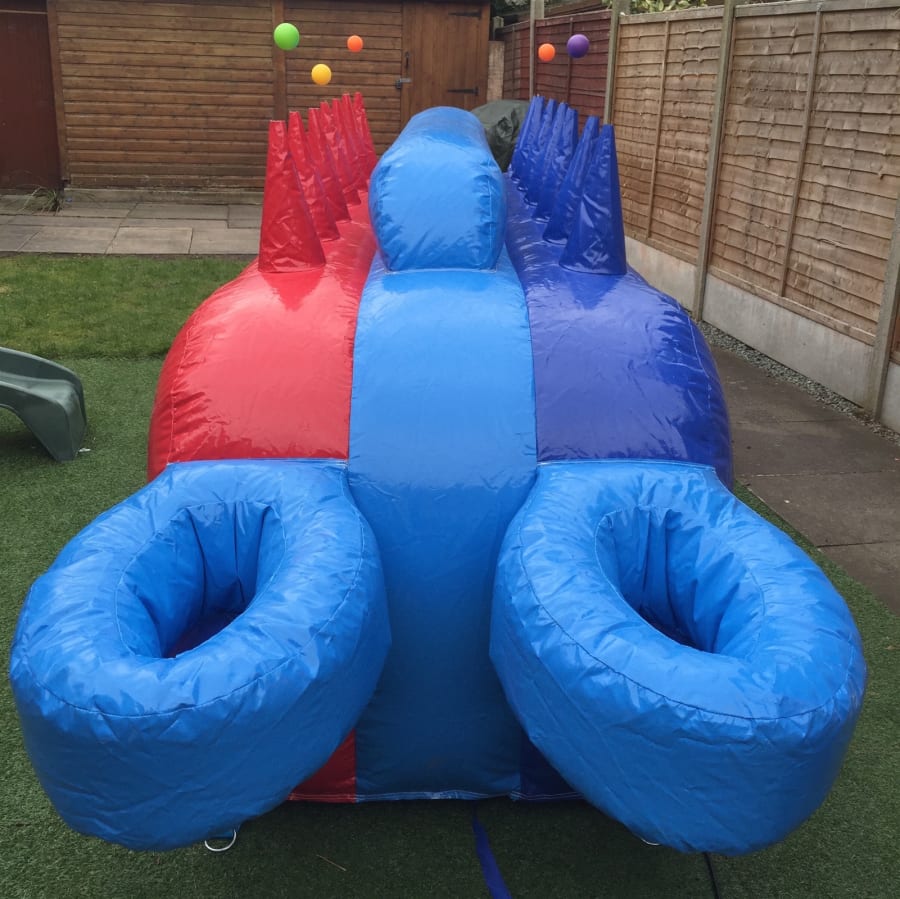 Hire our Air Juggler under pressure game and test your skill with our fun air pressure game of balance and co-ordination. This product item is great for team building and competitive games. The aim of the game is to get your ball from one net to the other using only the air cones, before your opponent by using the air cones. Use your skill to keep the ball in the air and juggle the ball from start to finish, the winner is the one who can get the ball in the hoop at the other end. Game can be played single player, two players or multi player game options. Great game for schools, sponsored events, competitions, corporate, event stands, fetes, fun days, fund raising and all other activities. Recommended for ages 6+ and great fun for all ages. Smaller children may find this game hard to use due to the height of the inflatable game and may require something to stand on, this must be under adult supervision at all times. This game is recommended for Indoor hire For outdoor hire the game must be set-up in a sheltered area to stop the balls flying away. This item will not work in windy conditions, because the balls have to float on top of the air vent blowers.