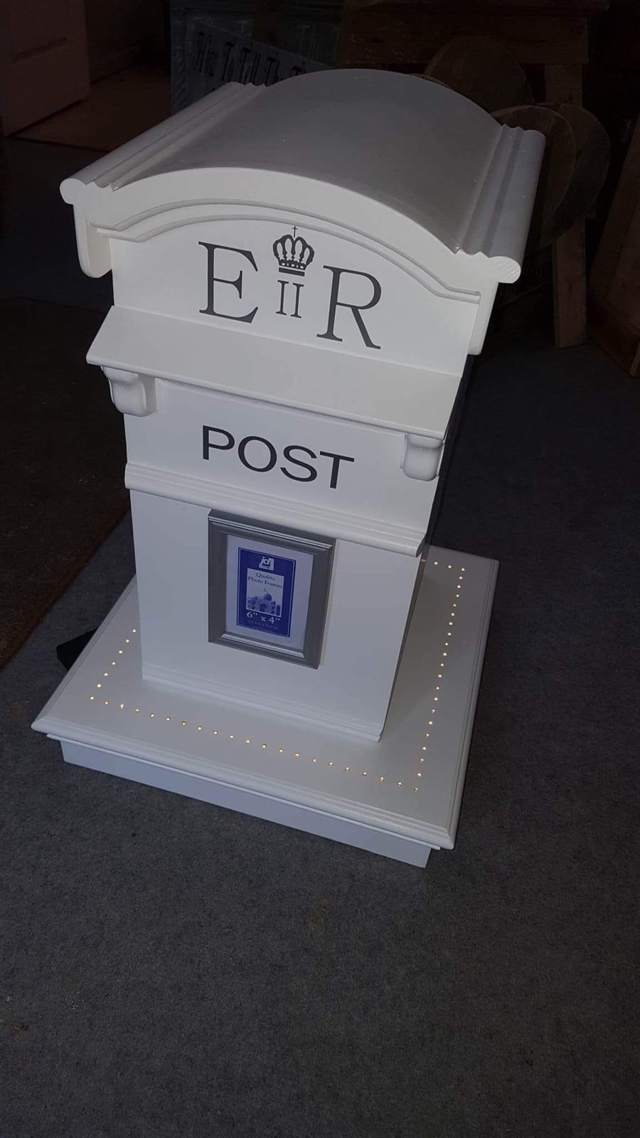 Our beautiful traditional table top post box with LED light base is just perfect for every special occasion, christenings, weddings, baby shower, anniversaries, naming days and engagements. Post box hire is ideal to keep your cards, gifts and money safe. We will provide you with a key to open the post box and this must be returned back to us after your event. The post box comes complete with personalised message of your event, this must be booked in advance just email your text to info@firstclassleisure.co.uk Dimensions: Post Box: 620mm H x 300mm W x 330mm D LED Light Base: 600mm L x 600mm W x 150mm D Refundable cash holding deposit will be required with all post box hire.