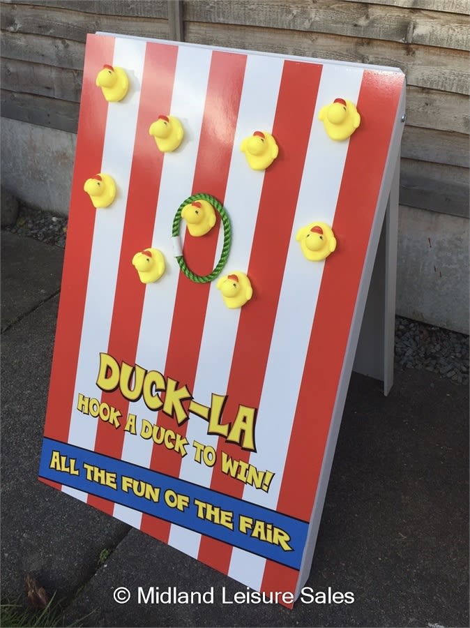 Duck-La game is very similar to the traditional fairground classic hook-a-duck game and a great game for all ages, perfect attraction for all fayres, fetes, fundraising events, fun days and lots more.