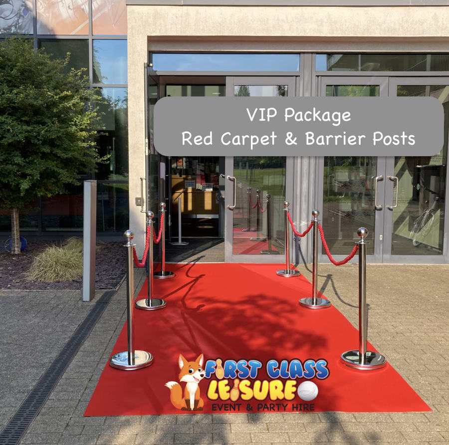 VIP Barriers Posts and red carpet walkways will make a beautiful entrance for any wedding or prom event. Items are also available to book for event stands, promotions, black tie events, Hollywood, oscars, award ceremonies, 007 style events, parties, VIP events, for marquee entrances, exhibitions, trade shows, product launches, all presentation events, home parties, home cinema and lots more events. Length of carpet can be adapted to suit different areas. Important: The floor surface area must to be flat, with no raised areas, no bumps, no pebbles or uneven flooring. For outdoor events we do prefer to see an image of the floor area space first, to see if the area is suitable and to avoid any problems on the event day. Photo image can be sent by email info@firstclassleisure.co.,uk, whatsApp or text to 07779484151 or messenger.