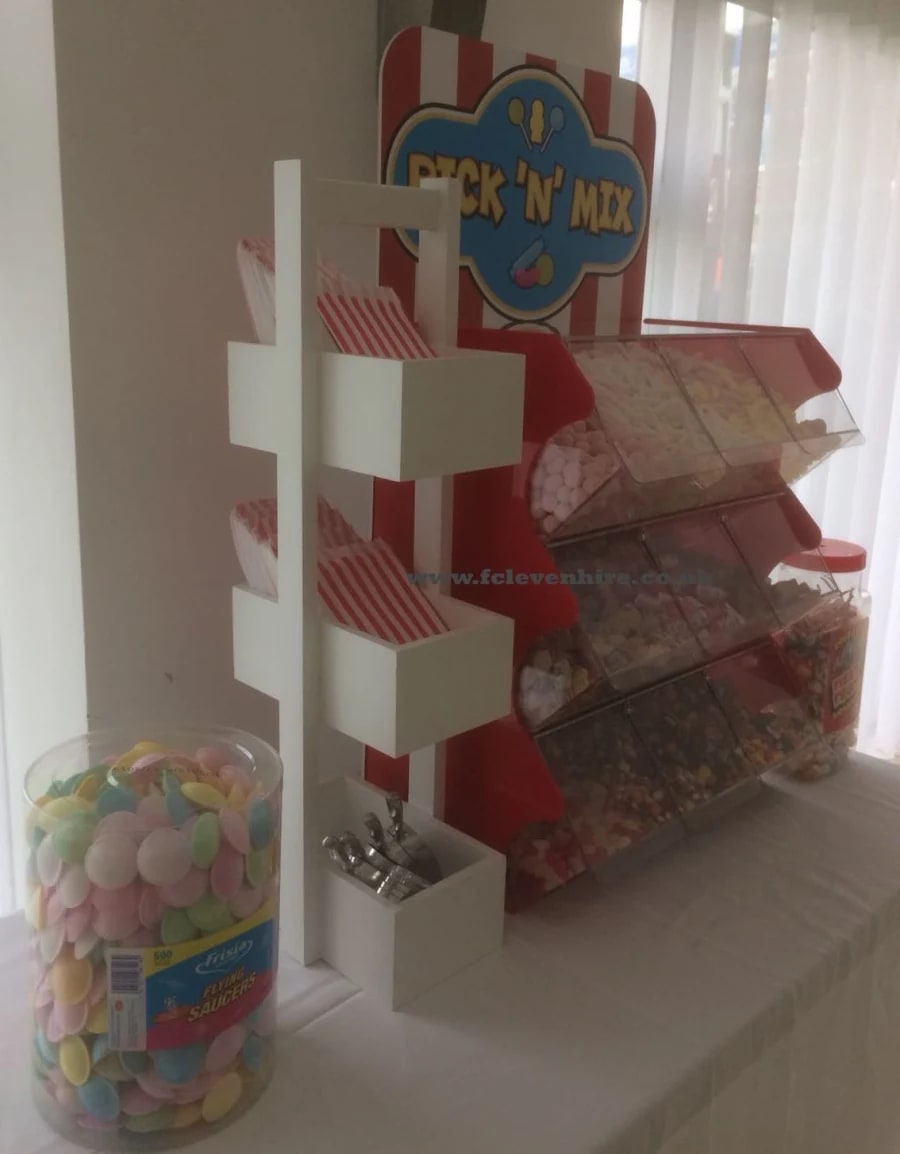 You can hire our Pick n Mix Stands and Candy Carts on their own, with or without sweets - Contact us for more details