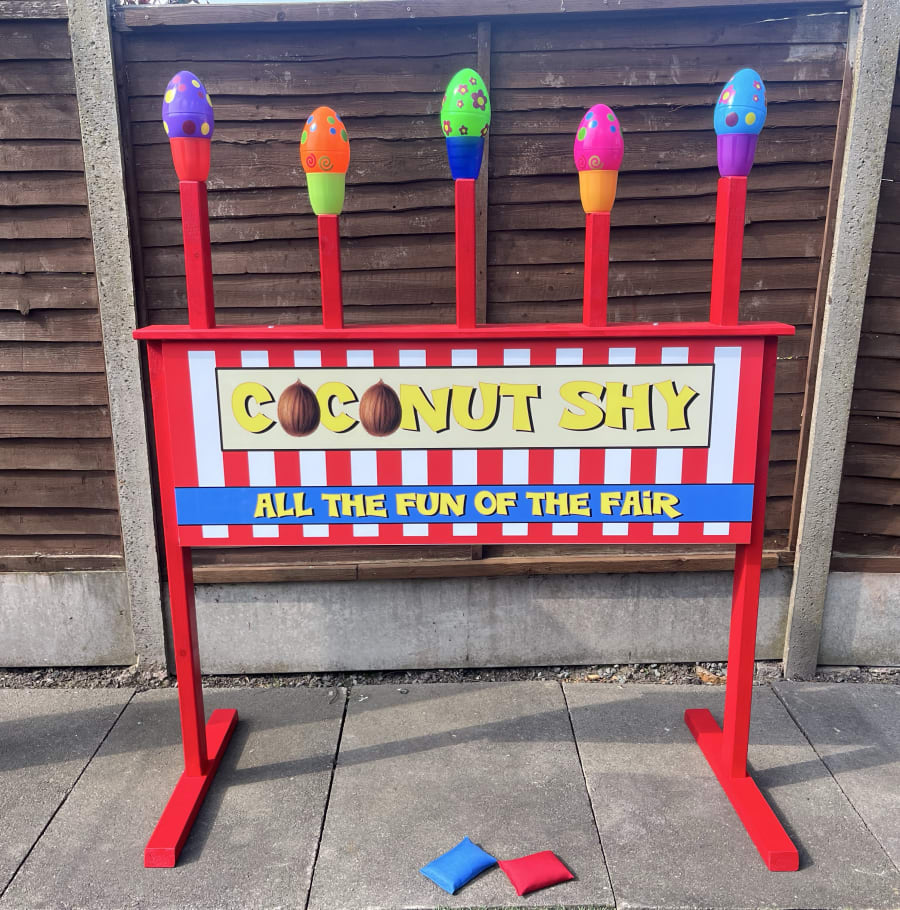 Colourful coconut Shy game available for hire in Wolverhampton, Bilston, Darlaston, Walsall, Dudley, Sedgley, Tipton, Coseley, Sedgley, Lower Gornal, Willenhall, Wednesfield, Coven, Perton, Cannock, Kingswinford, Wombourne, Stourbridge, Wednesbury, West Bromwich, Sandwell, Brownhills, Sutton Coldfield, Solihull, The Black Country, West Midlands, Stafford.