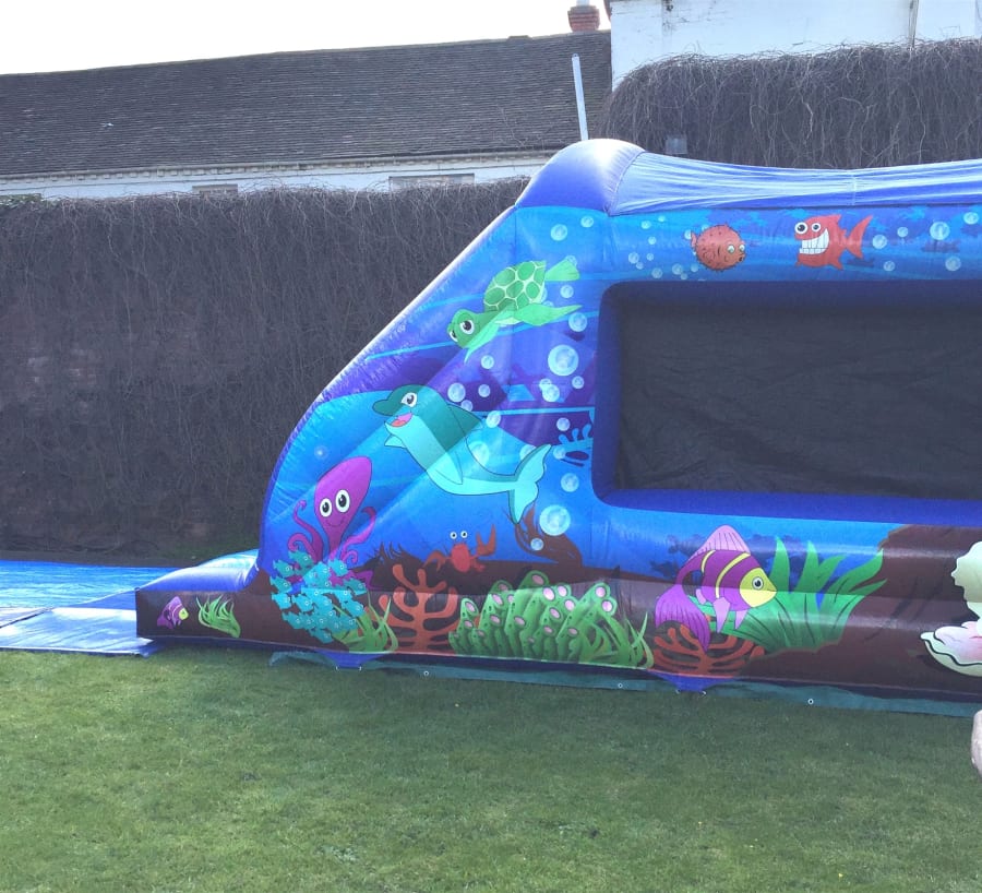 Ocean theme jump n slide bouncy castle hire in Wolverhampton, Bilston, Darlaston, Walsall, Dudley, Sedgley, Tipton, Coseley, Sedgley, Lower Gornal, Willenhall, Wednesfield, Coven, Perton, Cannock, Kingswinford, Wombourne, Stourbridge, Wednesbury, West Bromwich, Sandwell, Brownhills, Sutton Coldfield, Solihull, The Black Country, West Midlands, Stafford.