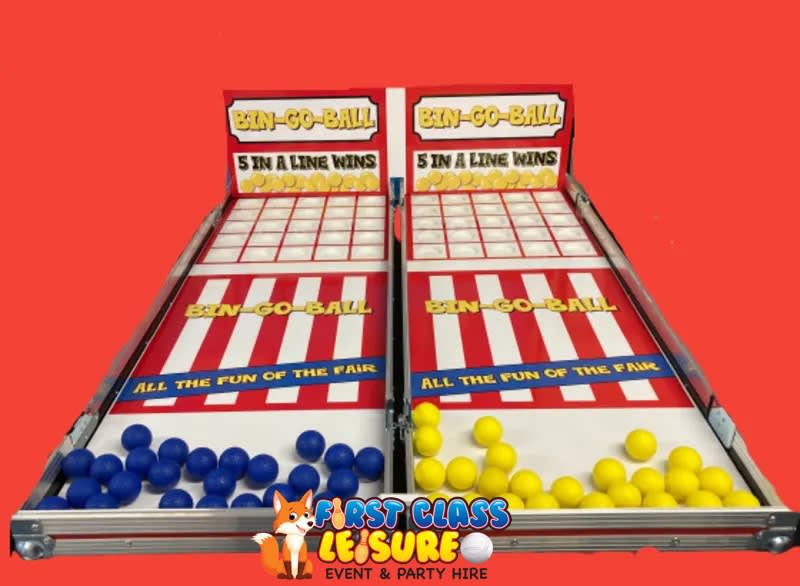 Hir this amazing Bin-Go-Ball table top case game for your next party or event, Great game to play for some competitive family fun, social events and team building events. How to play Bin-Go-Ball Game: Each player has 24 coloured balls, participants try their luck and test their skill by rolling balls to try and get 5 in a line, to win! Bin-Go-Ball can be played in so many different game options to suit your personal event, it’s great fun and sounds easy, but it’s more challenging than it sounds and very addictive. Two 4ft Long Tables Required - Case game when opened is approx 4ft L x 4ft W and sits onto two 4ft Long Tables. You will require two 4ft long tables for this game, you can either supply your own tables or hire tables from us. When booking just add additional items, tables for hire and select 4ft long tables (2 tables). Bin-Go-Ball case game is a great game for all ages and abilities. Perfect attraction for all fundraising events, fayres, fetes, fun days, schools, clubs, event hirers, schools, carnival events, social fun events, team building events, PTA groups, residential homes, church groups, councils, event hire companies, farm attractions..........