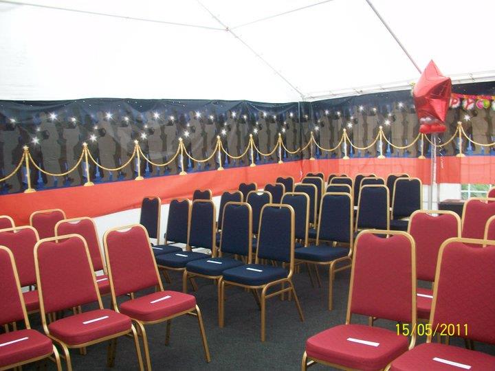Optional Chair Covers can be fitted to these chairs, for a price quote please email info@balloonspecialists.co.uk