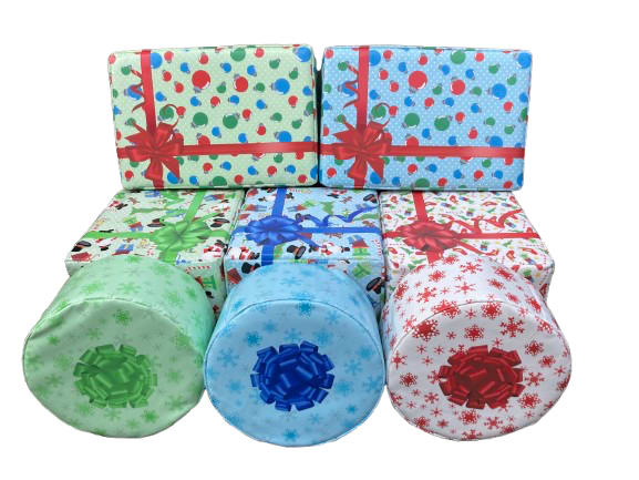 Set of 8 Christmas Present Themed Shapes Christmas Present Soft Play Shapes | Christmas Present Display Props Christmas present design shapes, suitable for indoor use only. These items can be used for display props for events or for children's parties, Christmas parties and events. Shapes can be used for soft play with Ball Pools, If you require a mat for the soft play shapes, just write this is the comments section on the booking form page.