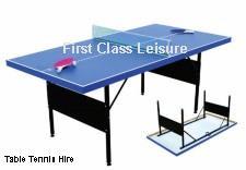 Table Tennis Tables: Theultimate game for two players. Supplied with all accessories, try and hit the ping pong ball over the net, to the other player, who will be the first player to score 21. Fantastic fun at events, mini tournaments or just fun! Table Size: 6ft L x 3ft W (71cm H) Floor space required approx 12ft L x 9ft W to fit all equipment for safe use. This table is not a full size table tennis table, but still big enough for all round family fun, schools and community events. Suitable for children and adults aged 6+ or younger children with adult supervision. Games Tables are FOR INDOOR USE ONLY we recommend Indoor function rooms, church halls, garages, house events etc. Games tables required for outdoor use will only be set-up under fully enclosed gazebos or marquees, with easy access.