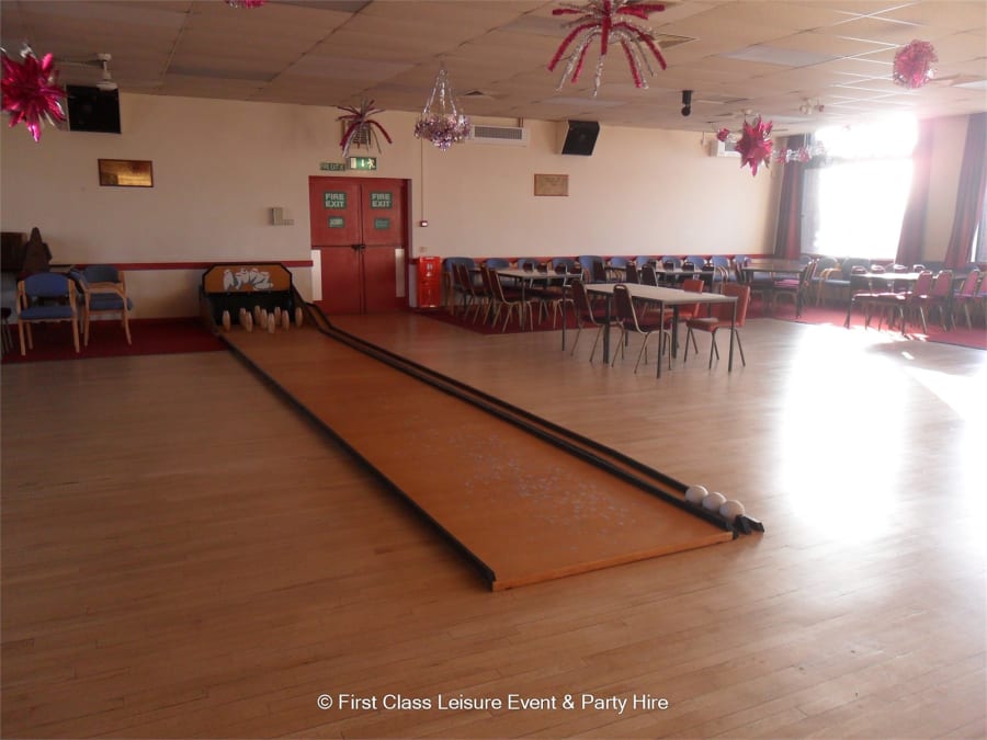 First Class Leisure offer great entertainment for all ages and abilities, we have equipment just perfect for social events, parties, christenings, weddings, anniversaries, team building..... This venue is perfect for traditional beer and skittles and other social events, with a fully stocked licensed bar selling a complete range of drinks and snacks, see our Skittle Alleys Hire page for more details. Fully stocked licensed bar sells a complete range of drinks and snacks. If you would like some advice on the best type of equipment to hire at this venue, then please use our contact us enquiry form and we will get back to you quickly with options available. First Class Leisure also supply table decor and party ware, table covers, banqueting roll, cups, plates, dishes, themed party ware, balloons, themed character balloons, foil balloons, number age balloons and lots more to decorate the function room ready for your event. Contact Us for more details on Balloon Decor, party ware, venue room styling and other decorations, LED Letters, Candy Carts For Hire, Pick & Mix Sweet Trays and lots more.