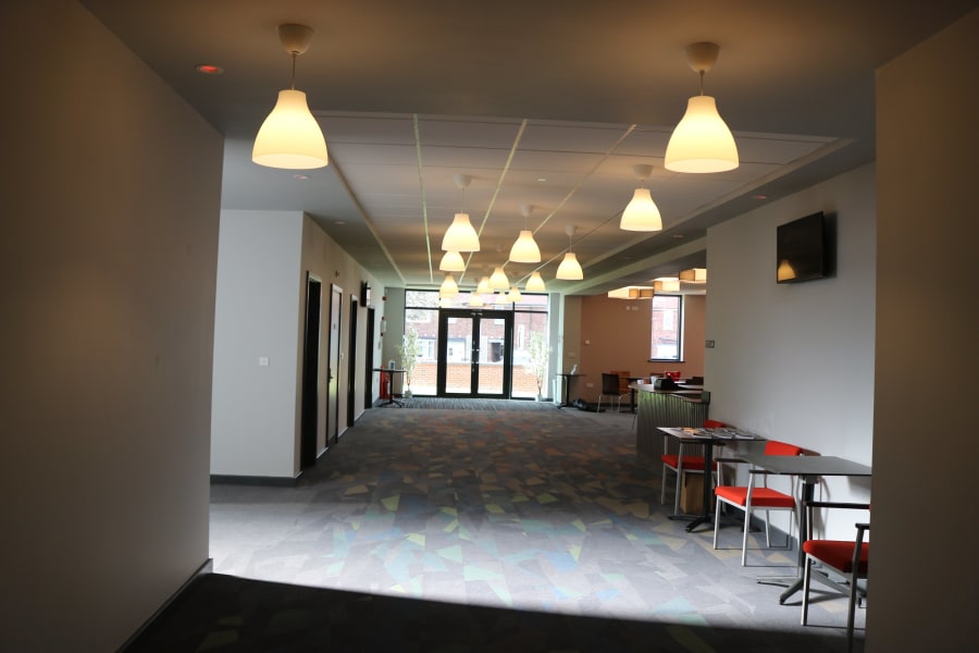 Our new building opened its doors in December 2021. It offers first-class facilities for a wide range of uses. It is an ideal venue for conferences, meetings, concerts, and informal occasions. There are disabled toilets and baby changing facilities on the ground floor and first floor. There is a carpark at the rear of the building for up to 40 vehicles and there are two disabled parking spaces at the front of the building. A lift will be installed in October 2022 to provide access for all to the first floor. There is free WiFi access in all areas of the building.