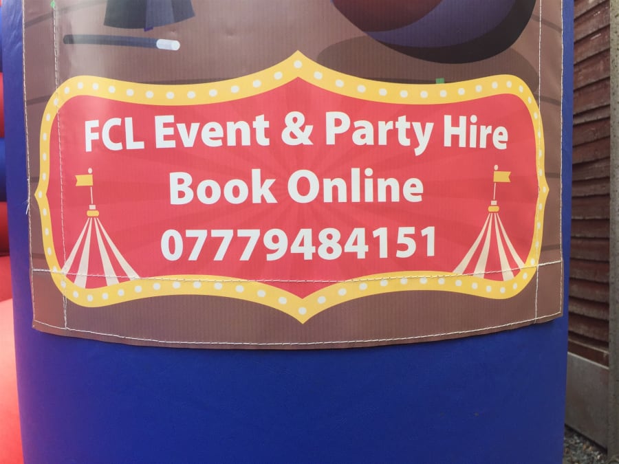 : Inflatable’s are suitable for both Indoor or outdoor hire, if set-up on grass we use large metal stakes to secure the Inflatable (see our FAQs Page) If your garden set-up area is grass both sides with pathway down the middle we can setup your Inflatable over a path way, as long as the path is not raised and flat to the grass. If the set-up area is on hard surface floors (Indoors) we use heavy weights/sandbags. The set-up area must be flat with no slopes or raised areas, slight gradients may sometimes be acceptable, if you are unsure just email or whats app a picture to 07779484151 of the set-up area so we can confirm if the area is suitable.