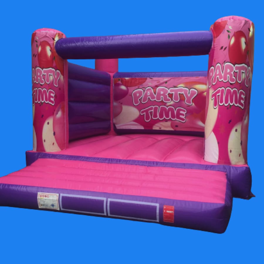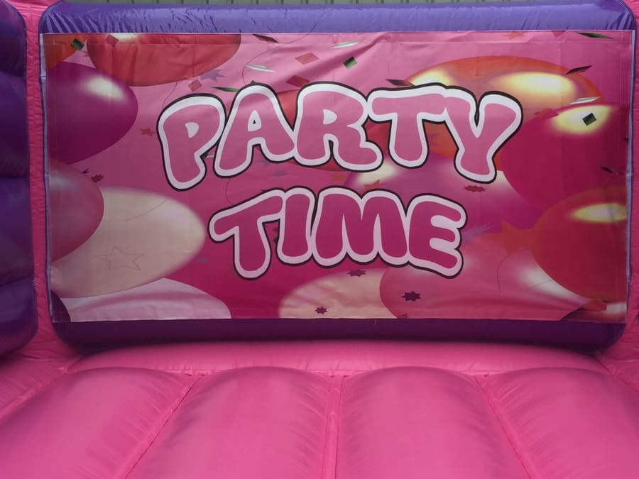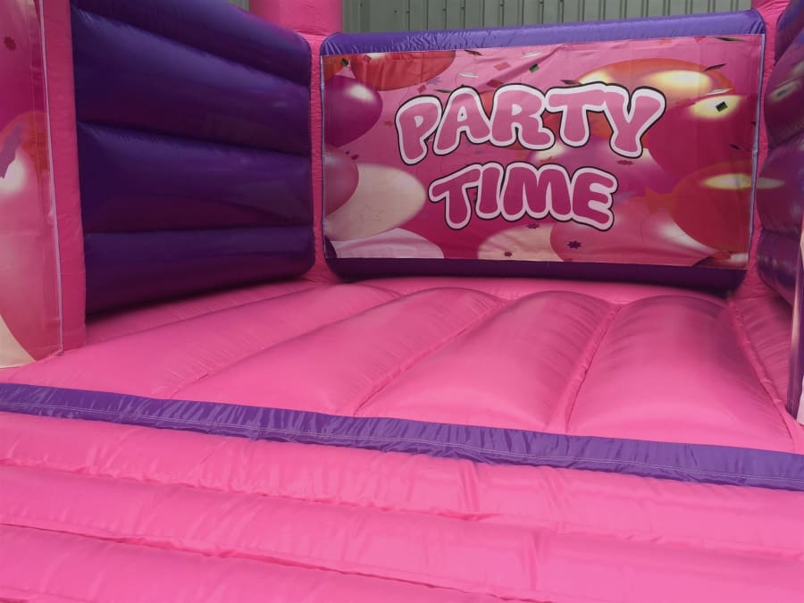 Party Time H Frame Bouncy Castle - For Indoor Hire This open front H frame bright coloured eye catching bouncy castle, in the lovely party time pink design, has a large bouncy bed making it perfect for all types of events, birthdays, parties, christenings, weddings, home parties, schools, fun days, church groups and much more. For extra safety this bouncy castle has high side walls, so users are not able to climb over the back and sides. Our bouncy castles are modern, have real good bounce and easy for users to climb on and off safety. The unisex artwork hero design is very popular and suitable for boys and girls up to 1.5m tall. To Book This Bouncy Castle For Outdoor Hire - Click Here
