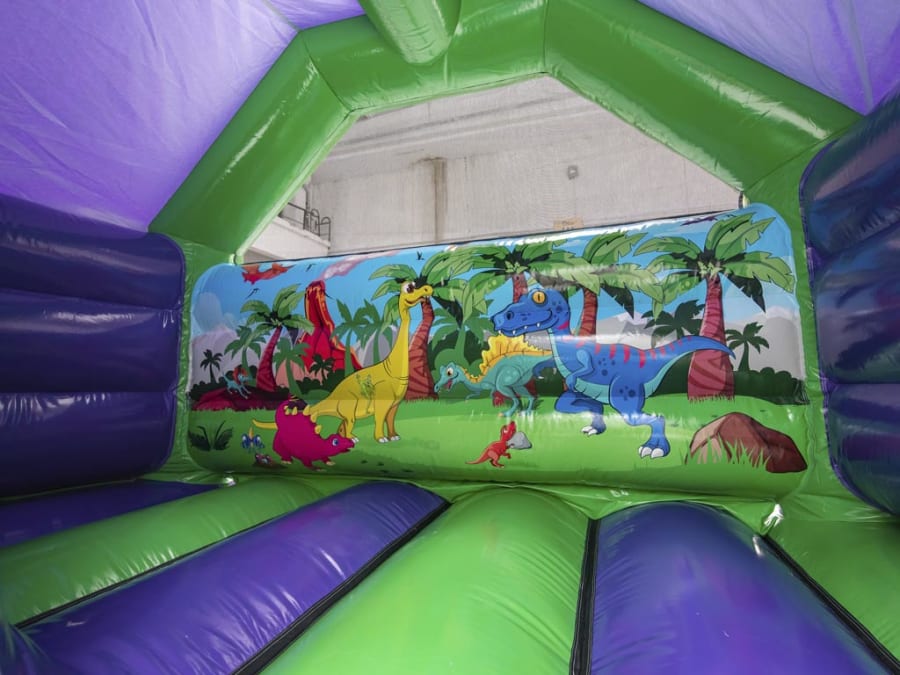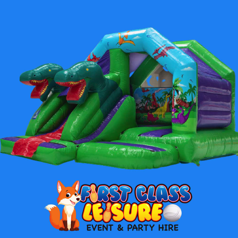 Dinosaur Themed Bouncy Castle Hire With T Rex Front Slide - Very popular!