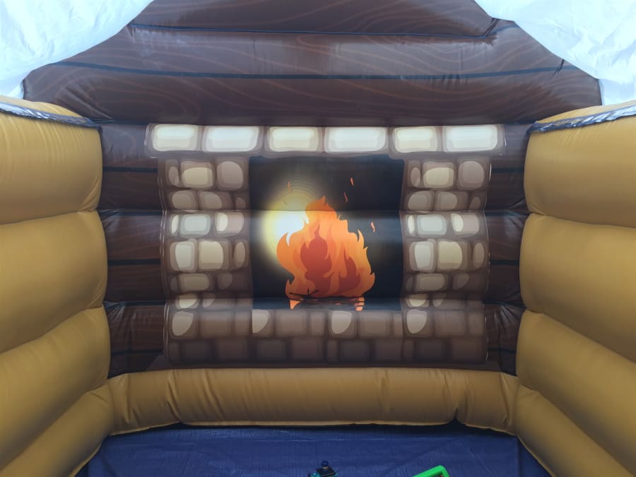 Our traditional log cabin Inflatable house can be used all year round for all types of indoor events, parties, adult parties, themed events, non alcoholic cocktail drinks station, alcoholic cocktails, promotions. The inside area is also perfect for a small buffet, drinks area, pick n mix or candy cart area or perfect for fun foods pop corn warmers, a perfect little housing for any party/event. The Inside floor area 11ft L x 8ft W is perfect to create your own bar or drinks station. The floor area will also fit one 6ft long table with 6-8 chairs around, if you fancy a sit down meal, fish and chip supper, takeaway, afternoon tea, drinks with friends or even a games area. If you would like to add furniture/accessories to this package just write your requirements in the any notes section of the booking form and we will add the additional extras to your order. Book online now or use our Contact Us quick enquiry form for a price quote