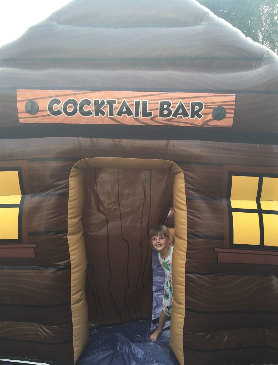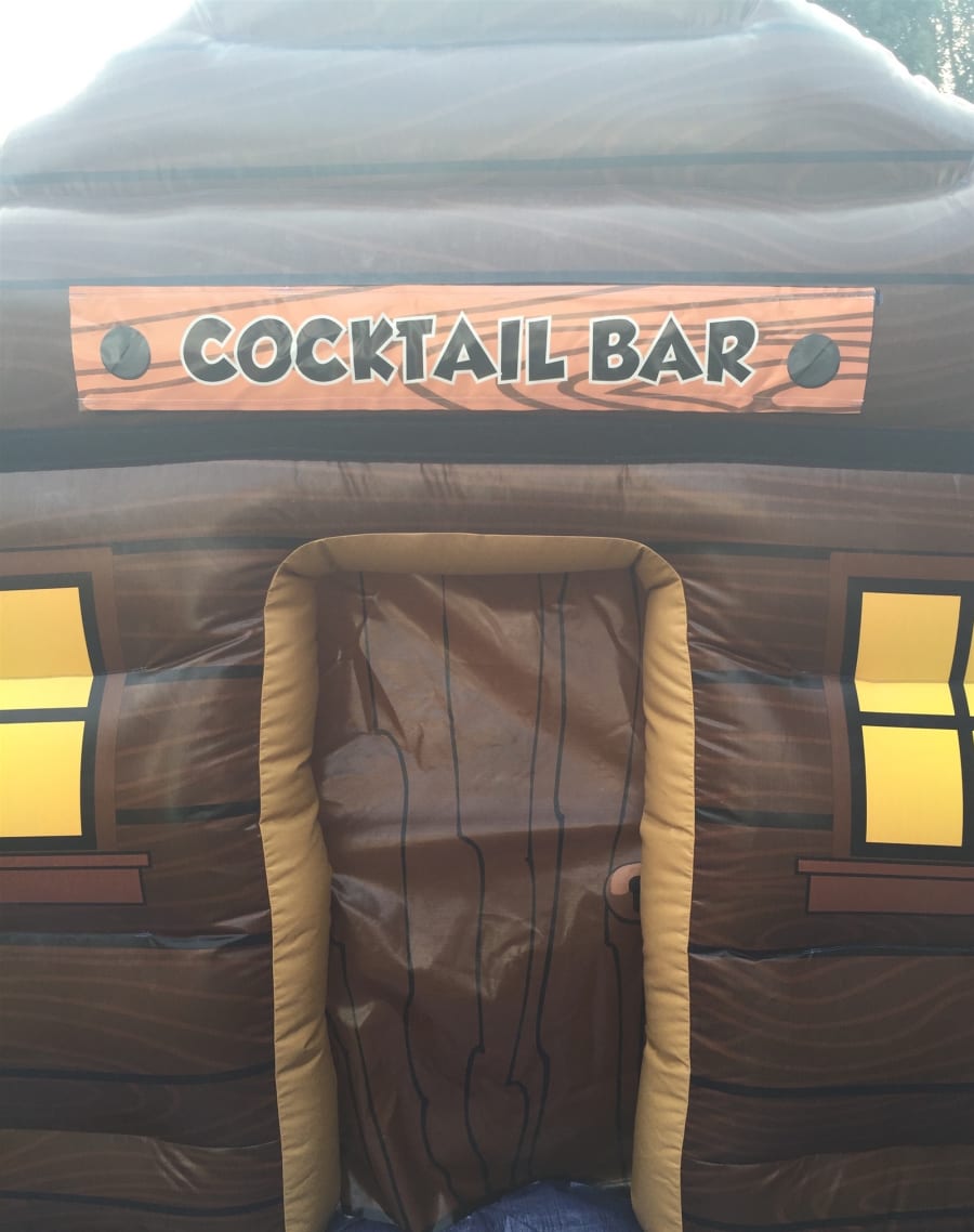 The Cocktail Bar Log Cabin Hire Our traditional log cabin 12ft L x 10ft W x 9ft tall sides and 12ft apex (13ft height clearance is required) Inflatable house can be used all year round for all types of indoor events, parties, adult parties, themed events, non alcoholic cocktail drinks station, alcoholic cocktails, promotions. The inside area is also perfect for a small buffet, drinks area, pick n mix or candy cart area or perfect for fun foods pop corn warmers, a perfect little housing for any party/event. The Inside floor area 11ft L x 8ft W is perfect to create your own cocktail bar. The floor area will also fit one 6ft long table with 6-8 chairs around, if you fancy a sit down meal, fish and chip supper, takeaway, afternoon tea, drinks with friends or even a games area. If you would like to add furniture/accessories to this package just write your requirements in the any notes section of the booking form and we will add the additional extras to your order.