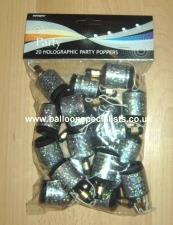 Holographic Party Poppers and Standard Every Day Party Poppers Sold in Pack of 20 Colours available: Black & Silver Gold Hot Pink Iridescent