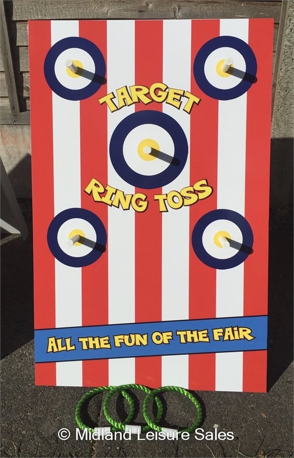 Target Ring Toss Game Target Ring Toss game is very similar to the traditional fairground classic ring toss and a great game for all ages. Our side stall games are perfect attraction for all fayres, fetes, fundraising, fun days, schools, home events, corporate, community events, parties....