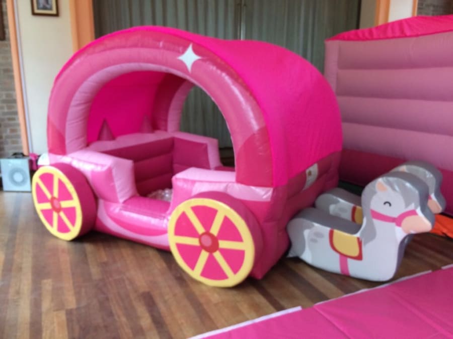 Princess Theme Soft Play Package 1 THIS PACKAGE IS FOR INDOOR HALLS AND VENUES ONLY IMPORTANT: Please check the floor requirements before booking this package. Are you having a princess theme event? then why not hire or amazing princess soft play package. This package Includes a princess theme soft play set, princess themed bouncy castle, stunning princess theme carriage ball pond with soft play horses, this is an amazing package for any little princess. Princess Themed Bouncy Castle 14.5ft x 10.5ft x 7.5ft Princess Theme Soft Play Set Princess Theme Carriage Ball Pond Hire Mats