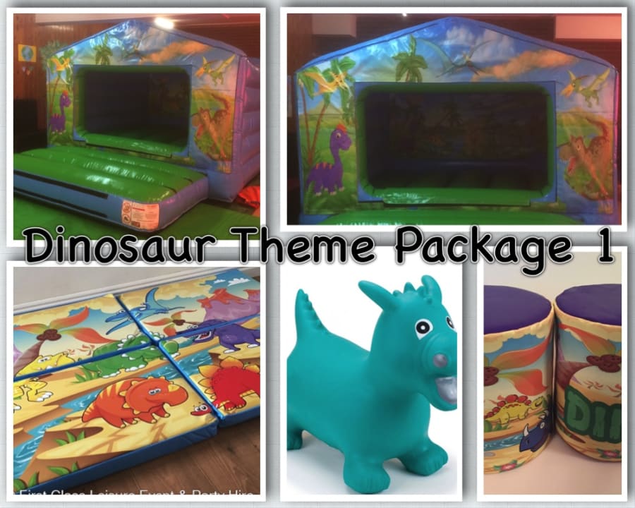 Dinosaur Theme Package 1 Our Dinosaur package is perfect to hire for your little terror-dactyls, to have some amazing fun with the Triceratops, T-Rex and other fun Dinosaurs. This package Includes all the items below - INDOOR PACKAGE